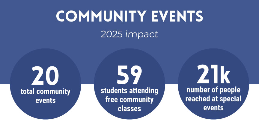 Giving Tuesday donations will go directly towards our outreach program, which spans scholarships, financial aid, low-cost or free field trips for area school children, community events, and performing arts. No amount is too small.