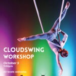 posted 9/30/2025 Cloudswing Workshop with Noelle Register online Sunday, October 57:00pm – 8:00pm$35 Cloudswing is a sling that is rigged to two points instead of to one point. This workshop will introduce students to foundational skills on the cloudswing!
